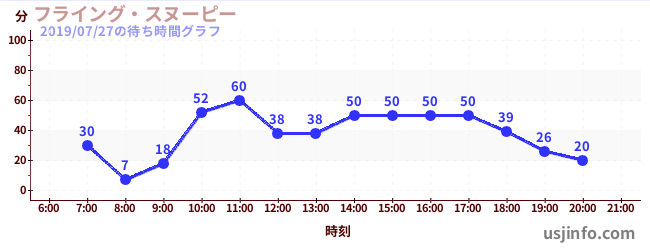 • フライング・スヌーピー$B$N(B2019年07月27日の待ち時間