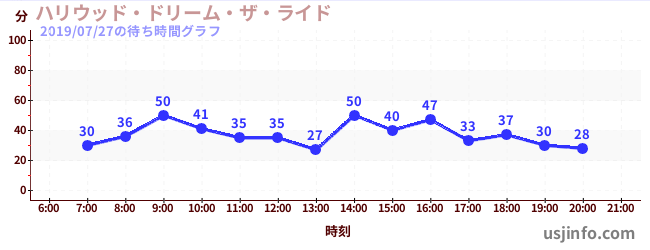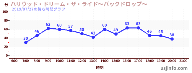 • ハリウッド・ドリーム・ザ・ライド$B$N(B2019年07月27日の待ち時間