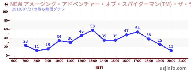 • NEW アメージング・アドベンチャー・オブ・スパイダーマン(TM)・ザ・ライド 4K3D$B$N(B2019年07月27日の待ち時間