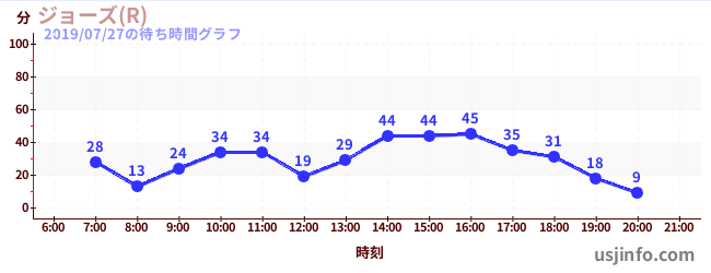 • ジョーズ(R)$B$N(B2019年07月27日の待ち時間