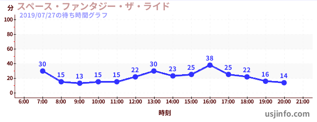 • スペース・ファンタジー・ザ・ライド$B$N(B2019年07月27日の待ち時間