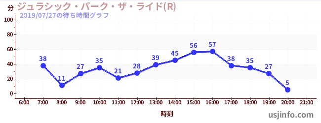 • ジュラシック・パーク・ザ・ライド(R)$B$N(B2019年07月27日の待ち時間