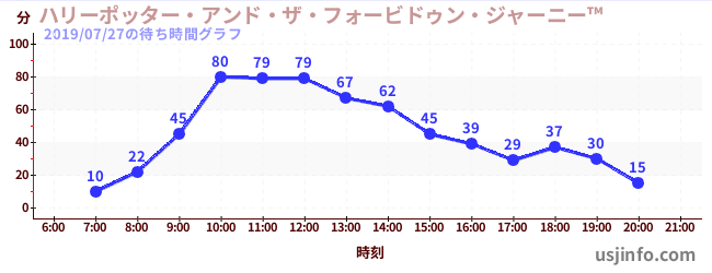 • ハリーポッター・アンド・ザ・フォービドゥン・ジャーニー™$B$N(B2019年07月27日の待ち時間