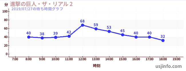 • 進撃の巨人・ザ・リアル 2$B$N(B2019年07月27日の待ち時間