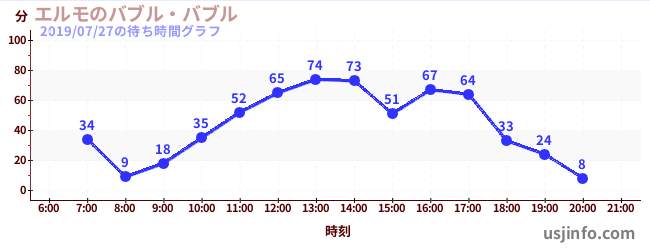 • エルモのバブル・バブル$B$N(B2019年07月27日の待ち時間