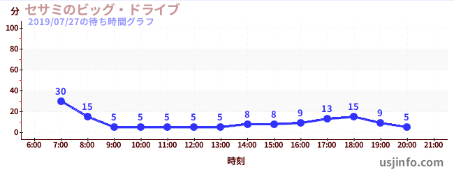 • セサミのビッグ・ドライブ$B$N(B2019年07月27日の待ち時間