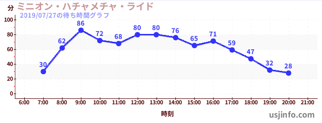 • ミニオン・ハチャメチャ・ライド$B$N(B2019年07月27日の待ち時間