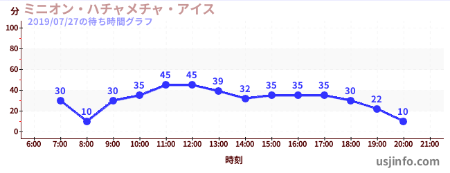 • ミニオン・ハチャメチャ・アイス$B$N(B2019年07月27日の待ち時間