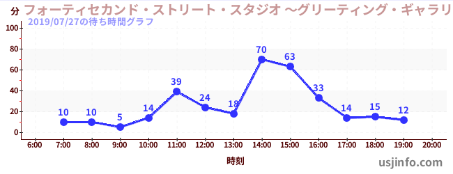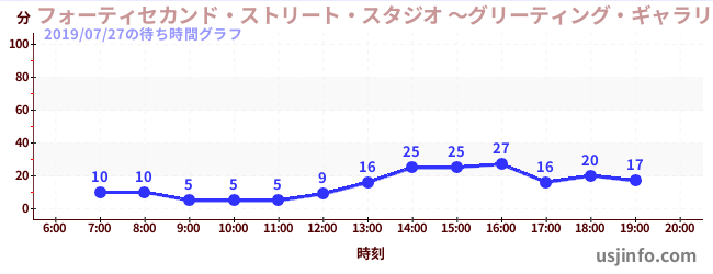 • フォーティセカンド・ストリート・スタジオ ~グリーティング・ギャラリー~ ミニオン$B$N(B2019年07月27日の待ち時間