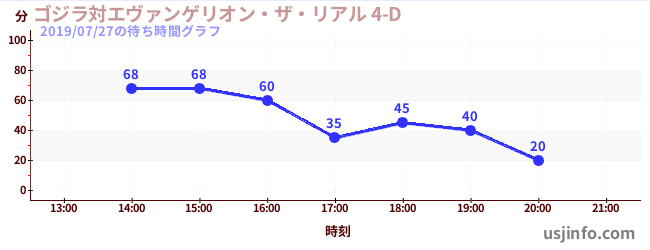 • ゴジラ対エヴァンゲリオン・ザ・リアル 4-D$B$N(B2019年07月27日の待ち時間