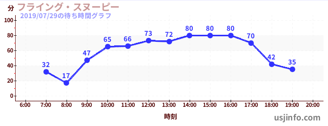 • フライング・スヌーピー$B$N(B2019年07月29日の待ち時間