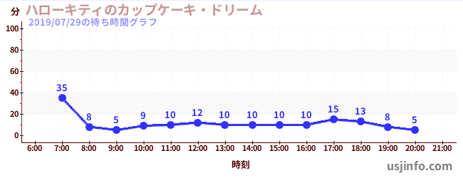 • ハローキティのカップケーキ・ドリーム$B$N(B2019年07月29日の待ち時間