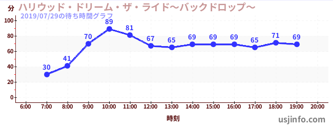 • ハリウッド・ドリーム・ザ・ライド〜バックドロップ〜$B$N(B2019年07月29日の待ち時間