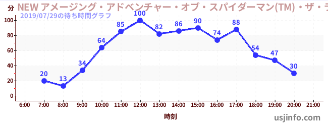 • NEW アメージング・アドベンチャー・オブ・スパイダーマン(TM)・ザ・ライド 4K3D$B$N(B2019年07月29日の待ち時間