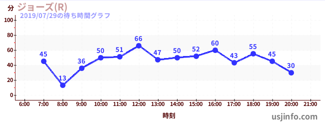 • ジョーズ(R)$B$N(B2019年07月29日の待ち時間