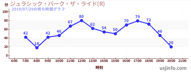 • ジュラシック・パーク・ザ・ライド(R)$B$N(B2019年07月29日の待ち時間