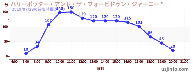 • ハリーポッター・アンド・ザ・フォービドゥン・ジャーニー™$B$N(B2019年07月29日の待ち時間