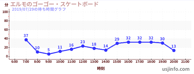 • エルモのゴーゴー・スケートボード$B$N(B2019年07月29日の待ち時間