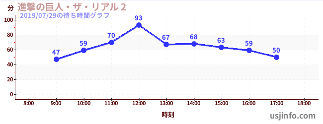 • 進撃の巨人・ザ・リアル 2$B$N(B2019年07月29日の待ち時間