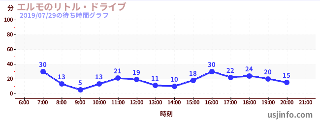 • エルモのリトル・ドライブ$B$N(B2019年07月29日の待ち時間