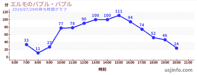 • エルモのバブル・バブル$B$N(B2019年07月29日の待ち時間