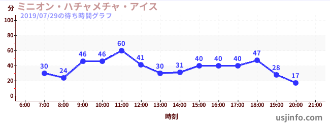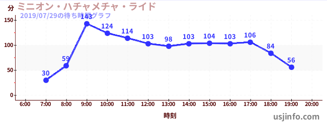 • ミニオン・ハチャメチャ・ライド$B$N(B2019年07月29日の待ち時間