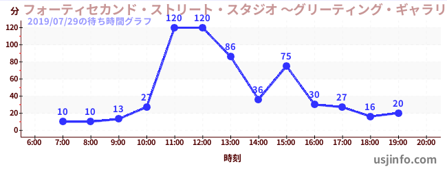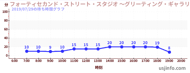 • フォーティセカンド・ストリート・スタジオ ~グリーティング・ギャラリー~ ミニオン$B$N(B2019年07月29日の待ち時間