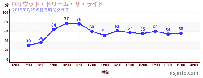 • ハリウッド・ドリーム・ザ・ライド$B$N(B2019年07月29日の待ち時間
