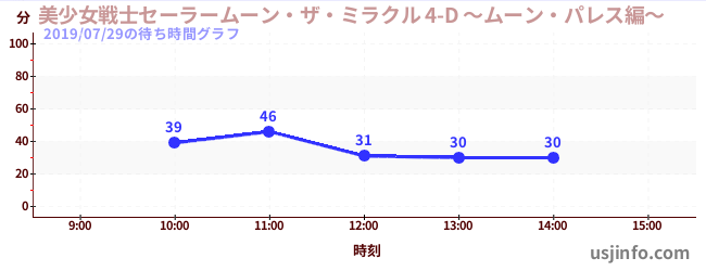 • 美少女戦士セーラームーン・ザ・ミラクル 4-D ~ムーン・パレス編~$B$N(B2019年07月29日の待ち時間