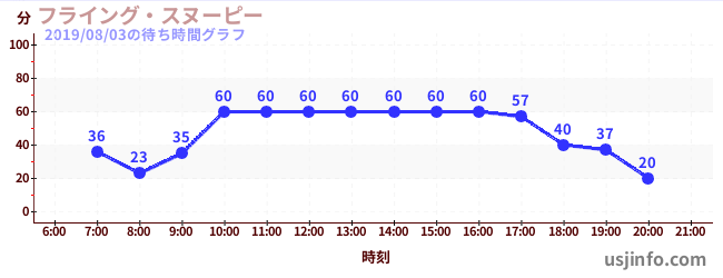 • フライング・スヌーピー$B$N(B2019年08月03日の待ち時間