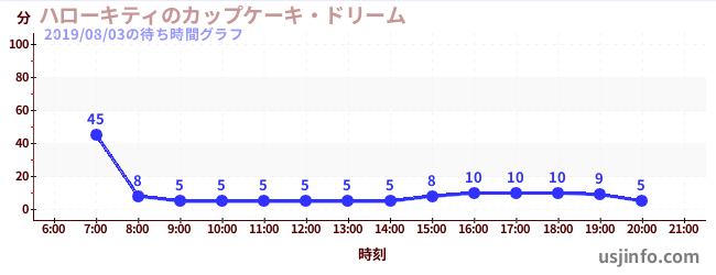 • ハローキティのカップケーキ・ドリーム$B$N(B2019年08月03日の待ち時間