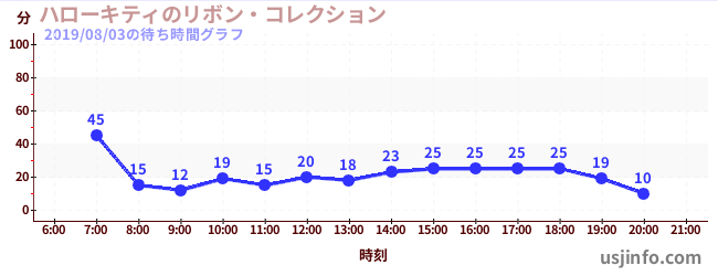 • ハローキティのリボン・コレクション$B$N(B2019年08月03日の待ち時間