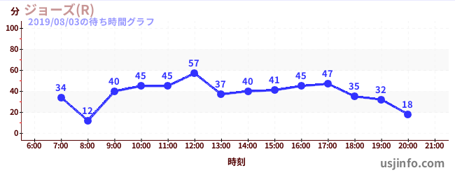 • ジョーズ(R)$B$N(B2019年08月03日の待ち時間