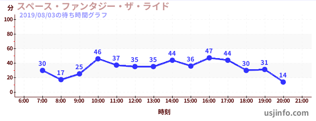 • スペース・ファンタジー・ザ・ライド$B$N(B2019年08月03日の待ち時間