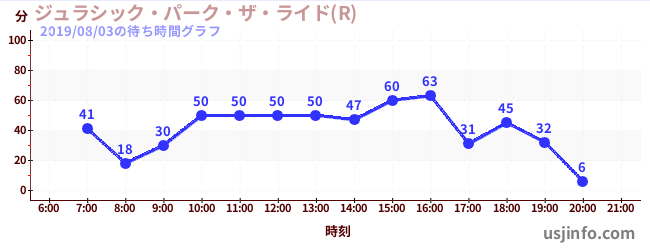 • ジュラシック・パーク・ザ・ライド(R)$B$N(B2019年08月03日の待ち時間