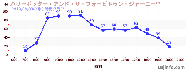 • ハリーポッター・アンド・ザ・フォービドゥン・ジャーニー™$B$N(B2019年08月03日の待ち時間
