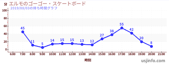 • エルモのゴーゴー・スケートボード$B$N(B2019年08月03日の待ち時間