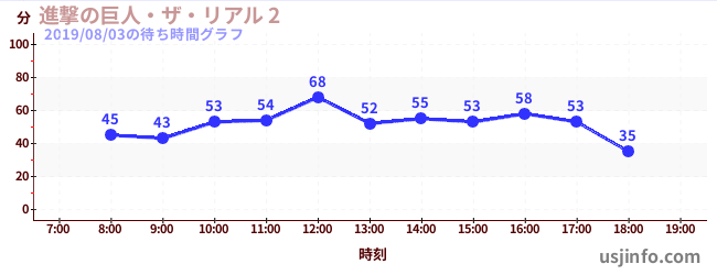 • 進撃の巨人・ザ・リアル 2$B$N(B2019年08月03日の待ち時間