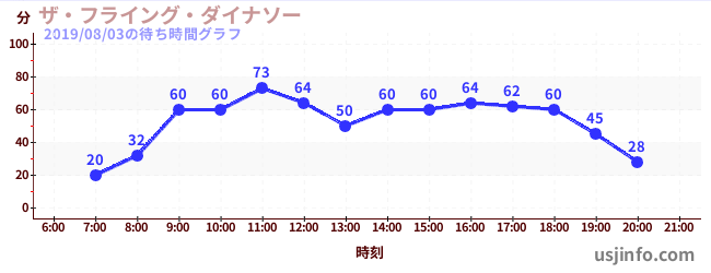 • ザ・フライング・ダイナソー$B$N(B2019年08月03日の待ち時間