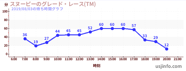 • スヌーピーのグレード・レース(TM)$B$N(B2019年08月03日の待ち時間