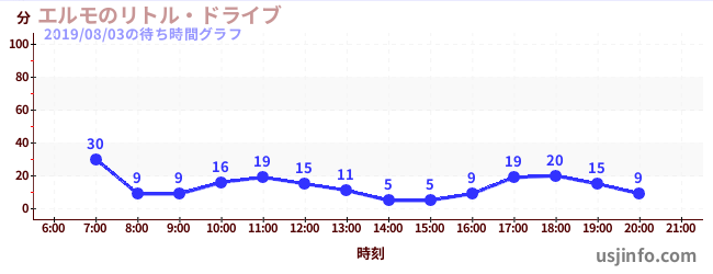 • エルモのリトル・ドライブ$B$N(B2019年08月03日の待ち時間