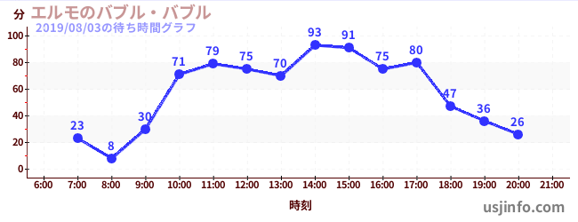 • エルモのバブル・バブル$B$N(B2019年08月03日の待ち時間
