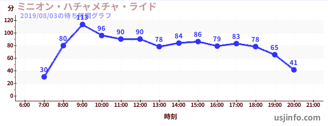 • ミニオン・ハチャメチャ・ライド$B$N(B2019年08月03日の待ち時間