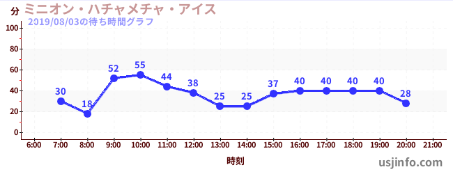 • ミニオン・ハチャメチャ・アイス$B$N(B2019年08月03日の待ち時間