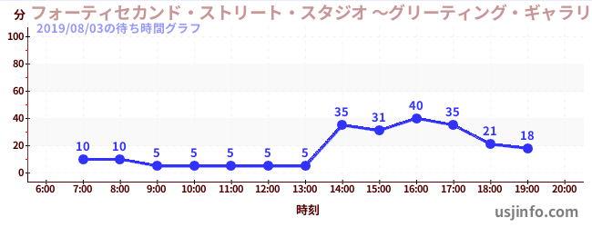 • フォーティセカンド・ストリート・スタジオ ~グリーティング・ギャラリー~ ピーナッツの仲間たち$B$N(B2019年08月03日の待ち時間