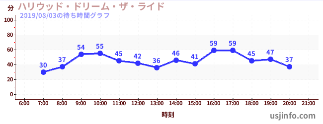 • ハリウッド・ドリーム・ザ・ライド$B$N(B2019年08月03日の待ち時間