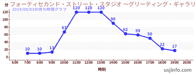 • フォーティセカンド・ストリート・スタジオ ~グリーティング・ギャラリー~ ミニオン$B$N(B2019年08月03日の待ち時間