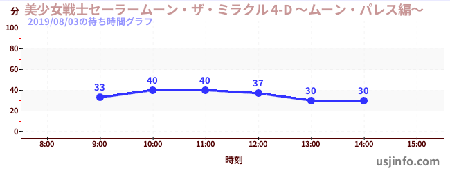 • 美少女戦士セーラームーン・ザ・ミラクル 4-D ~ムーン・パレス編~$B$N(B2019年08月03日の待ち時間