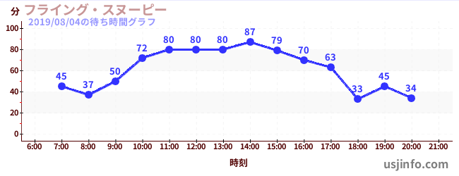 • フライング・スヌーピー$B$N(B2019年08月04日の待ち時間
