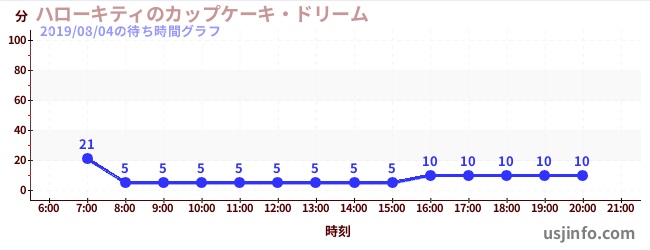 • ハローキティのカップケーキ・ドリーム$B$N(B2019年08月04日の待ち時間